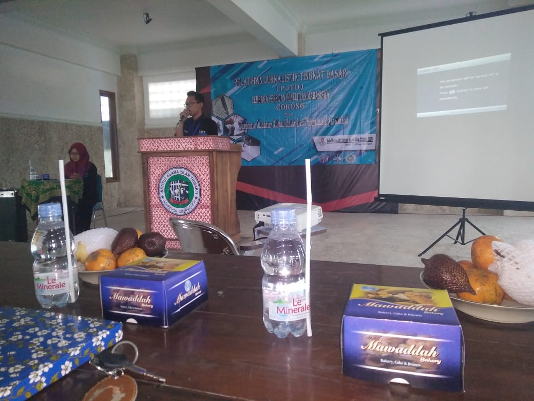 LP2M.CORONG- Telah resmi dibuka kegiatan Pelatihan Jurnalistik Tingkat Dasar  (PJTD) oleh Lembaga Pers dan Penelitian Mahasiswa (LP2M) Corong. Selasa (18/09) di Aula Mahrus Aly IAI Tribakti Kediri.