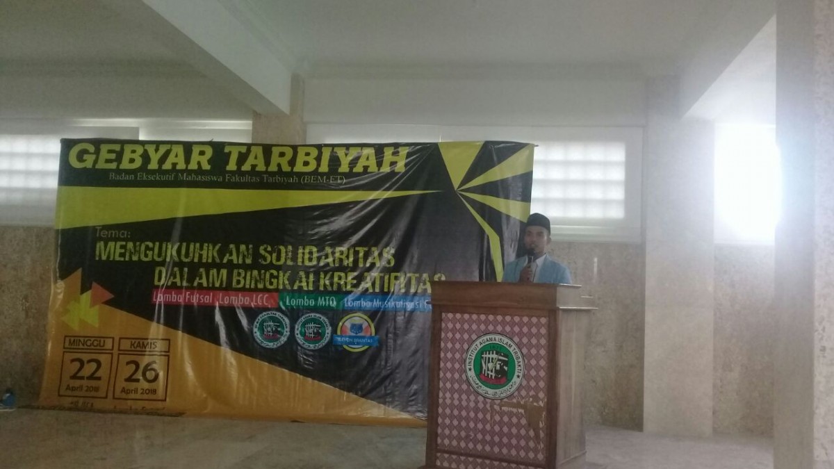 Gebyar Tarbiyah adalah sebuah agenda Terakhir Badan Eksekutif Mahasiswa Fakultas Tarbiyah (BEM-FT) periode 2017-2018. Untuk mengukuhkan solidaritas, memberikan wadah kepada mahasiswa khususnya fakultas Tarbiyah untuk mengembangkan bakat minatnya.