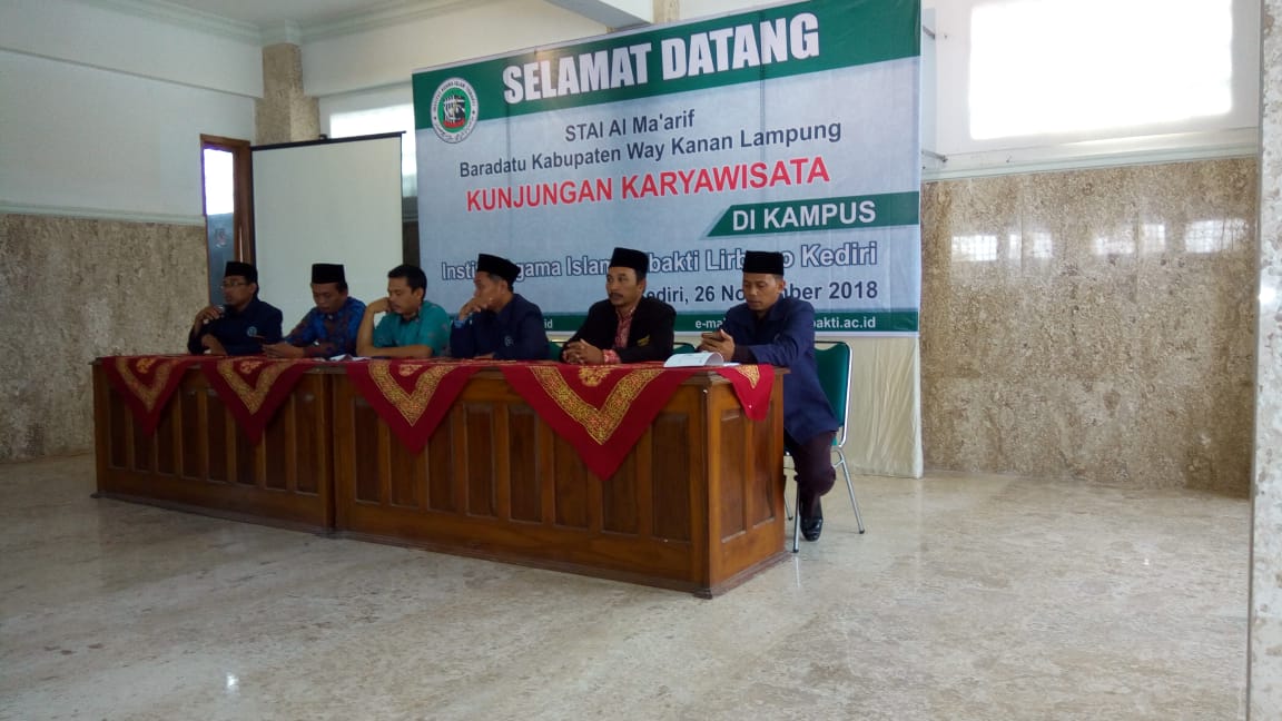 Acara ini adalah permintaan dari STAI Al-Ma’arif Lampung yang ingin melakukan studi banding ke IAI-Tribakti Kediri, ada beberapa hal yang ingin di ketahui oleh STAI Al-Ma’arif yakni terkait pengelolaan kampus dan kualitas SDM, sebagaimana Tribakti juga pernah melakukan hal yang sama yakni studi banding seperti ke UGM, UIN Jogyakarta, dan UNISMA. Ujarnya.
