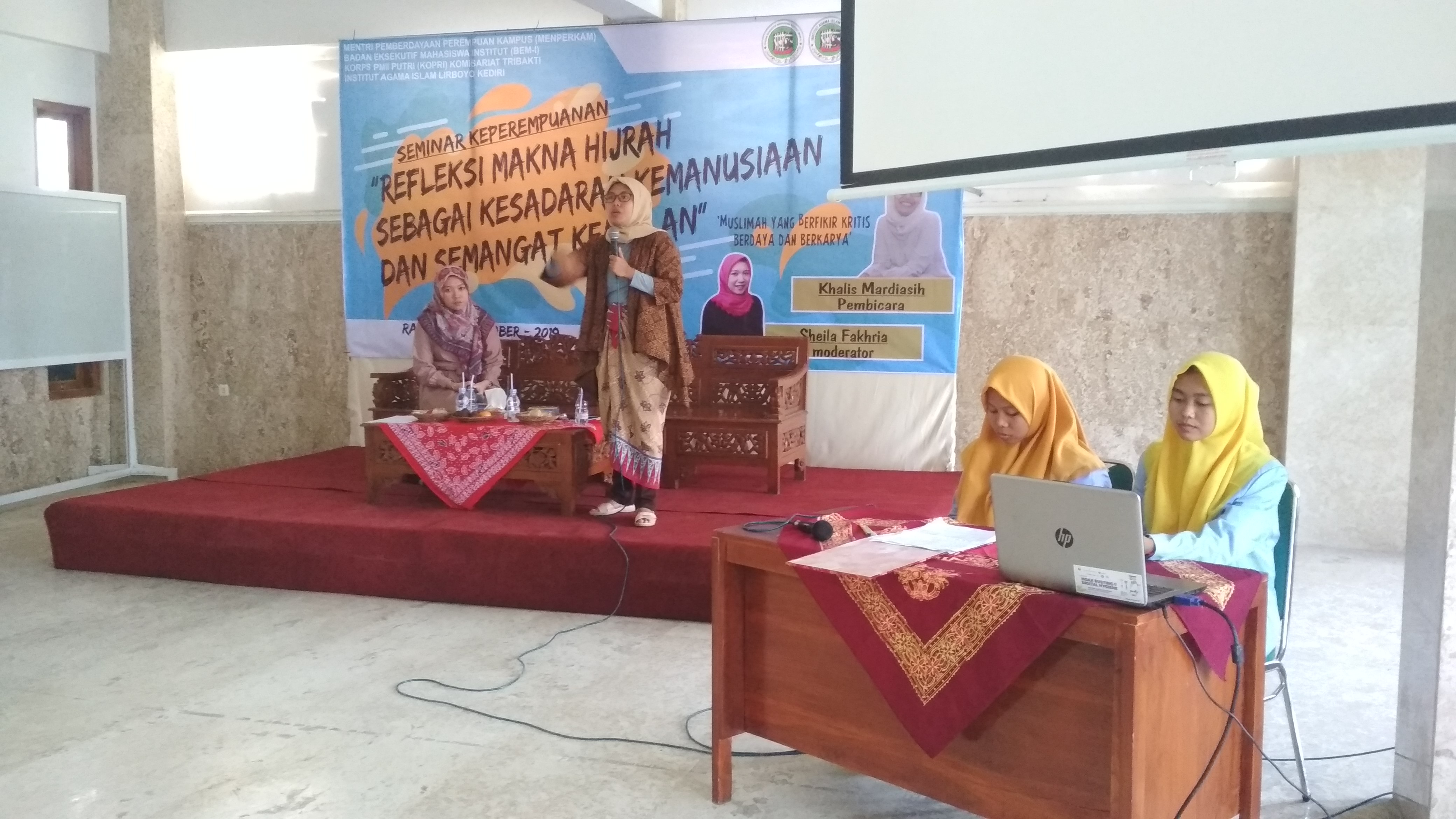 LP2M Corong – Menteri Pemberdayaan Perempuan Kampus (Memperkam) Badan Eksekutif Mahasiswa Institut (BEM-I) bekerjasama dengan Korps Putri (Kopri) PMII komisariat Tribakti menghadirkan sosok Khalis Mardiasih dalam acara seminar perempuan (30/10).