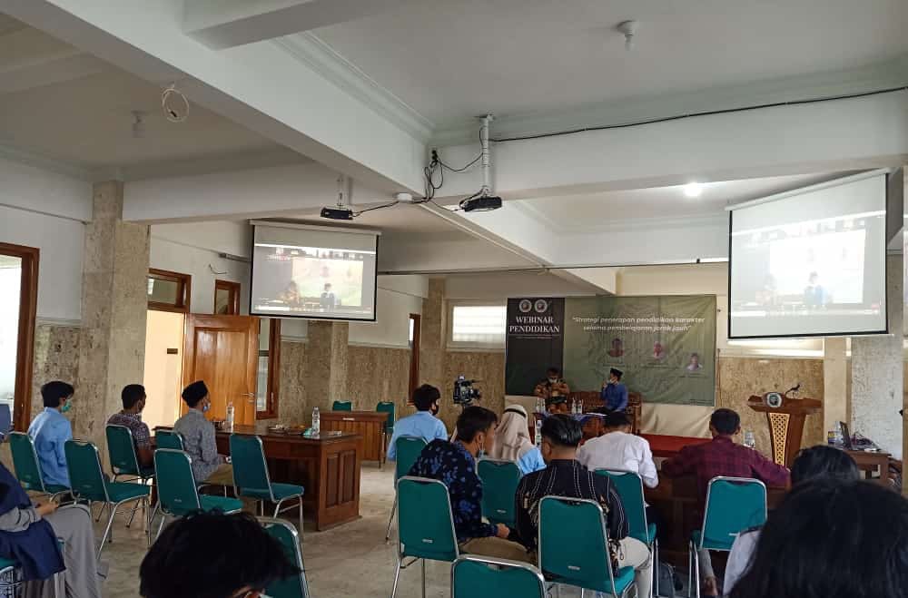 Kegiatan ini dilakasanan dengan kapasitas offline 30 peserta dan online menggunakan aplikasi zoom meet. Webinar kali ini mengangkat tema “Strategi Penerapan Pendidikan Karakter Selama Pembelajaran Jarak Jauh” dengan mengahadirkan dua pemateri ternama yaitu pemateri pertama Akhol Firdaus, M.Ag. dan pemateri ke dua Dr. KH. Reza ahmad Zahid, Lc. MA. Atau biasa dipanggil Gus Reza, dengan dimoderatori oleh Akbar Muharom, S.Pd, alumni Fakultas Tarbiyah.