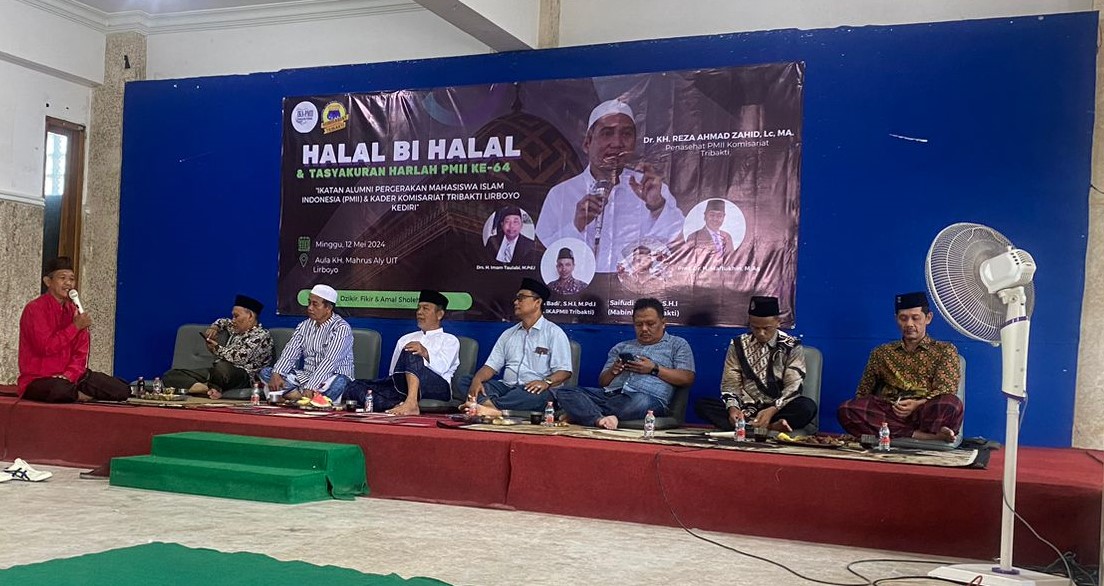 Lp2m_Corong – Ikatan Alumni Pergerakan Mahasiswa Islam Indonesia (IKAPMII) dan kader Pergerakan Mahasiswa Islam Indonesia (PMII) Komisariat Tribakti Lirboyo Kediri pada Minggu 12 Mei 2024 mengadakan halah bi halah dan tasyakuran (hari lahir) HARLAH PMII ke-64 di Aula Mahrus Aly kampus Universitas Islam Tribakti Lirboyo Kediri (UIT).