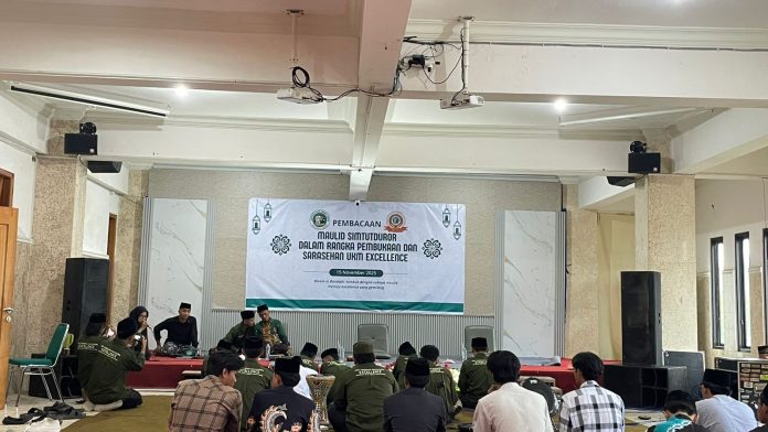 LP2M CORONG (18/11/25) – Unit Kegiatan Mahasiswa (UKM) Excellence kembali menunjukkan eksistensinya melalui penyelenggaraan Kegiatan Maulid dan Sarasehan pada Sabtu, 15 November 2025, bertempat di Aula Mahrus Ali. Kegiatan yang mengusung tema “Bloom in Barokah: Tumbuh dengan Cahaya Maulid Menuju Excellence yang Gemilang” ini menjadi ruang penting bagi seluruh anggota untuk memperkuat spiritualitas sekaligus mempererat hubungan antargenerasi dalam organisasi.