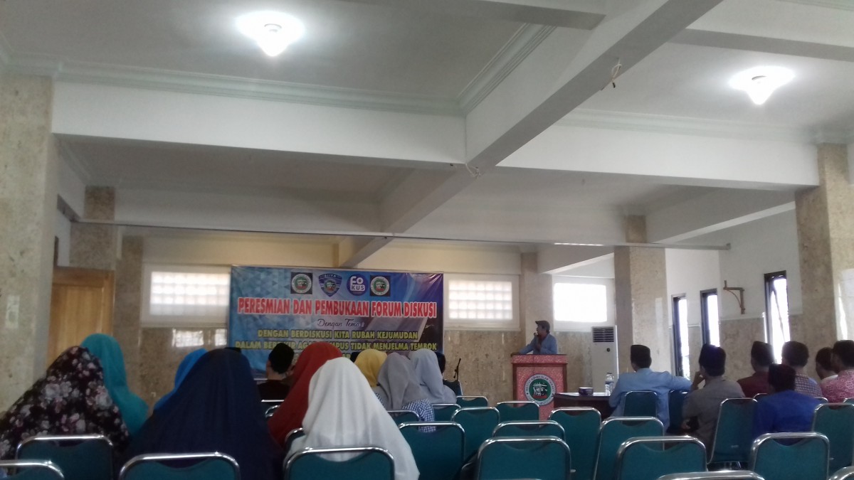 Selain itu, dengan adanya peresmian ini diharapkan mahasiswa, Fakultas Syariah khususnya agar bersungguh-sungguh dalam menjalankan komitmen berdiskusi.
